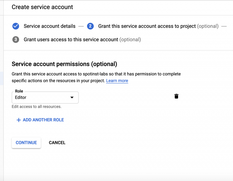 Log in to the Google Cloud project you would like Spot to connect to. Use the button for quick navigation.